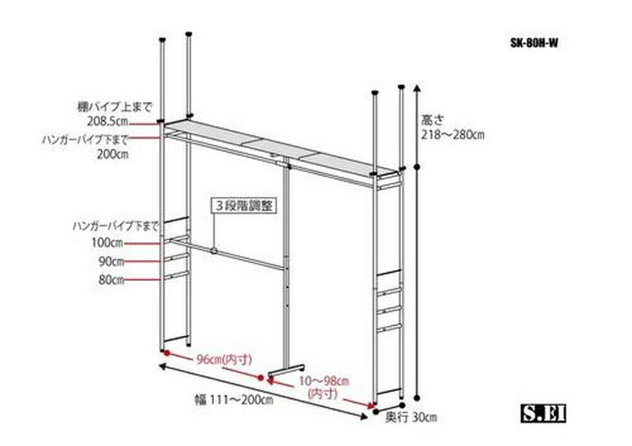 突っ張り式ハンガーラックで省スペース収納|ハイタイプ・ワイド幅&奥行30cmの壁面クローゼット|av-sk-80h-w