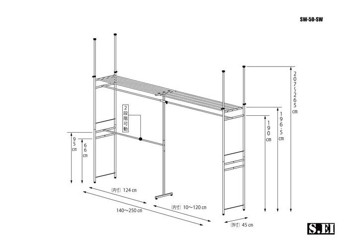 つっぱりハンガーラック 壁面収納に最適!ウォークインクローゼット対応の幅140-250cmスーパーワイド|av-sw-50sw