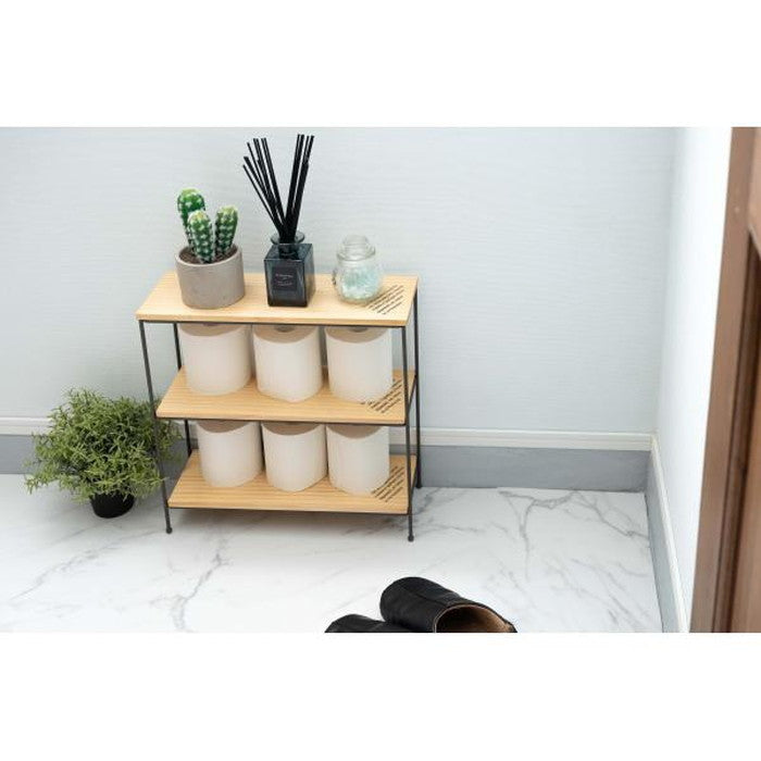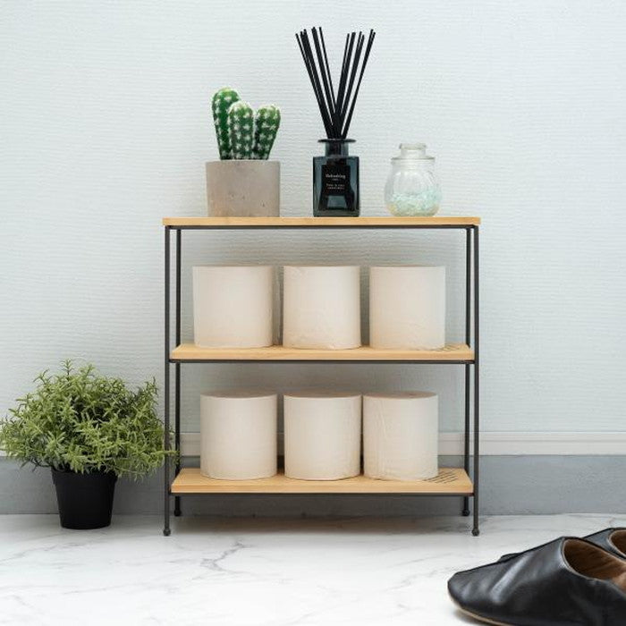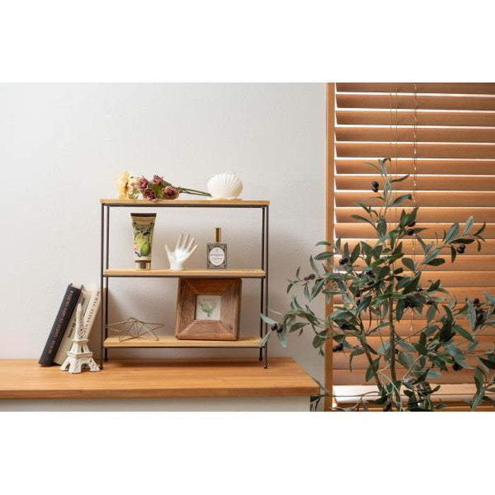 天然木とスチールの美しい調和!オープンラック ブラウン・アイボリー W40×D14×H40|azu-akb-403
