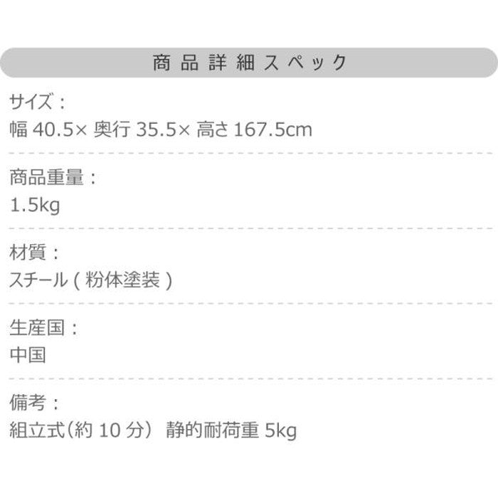 シンプルで機能的!ダークグレー・ホワイトのスチール製ハンガーラック W40.5×H167.5|azu-mip-70