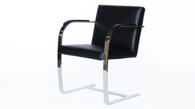 ダイニングチェア ミース・ファン・デル・ローエ ブルーノチェア ブラック レザー 本革 保証付 e-comfort デザイナーズ ジェネリック家具 リプロダク