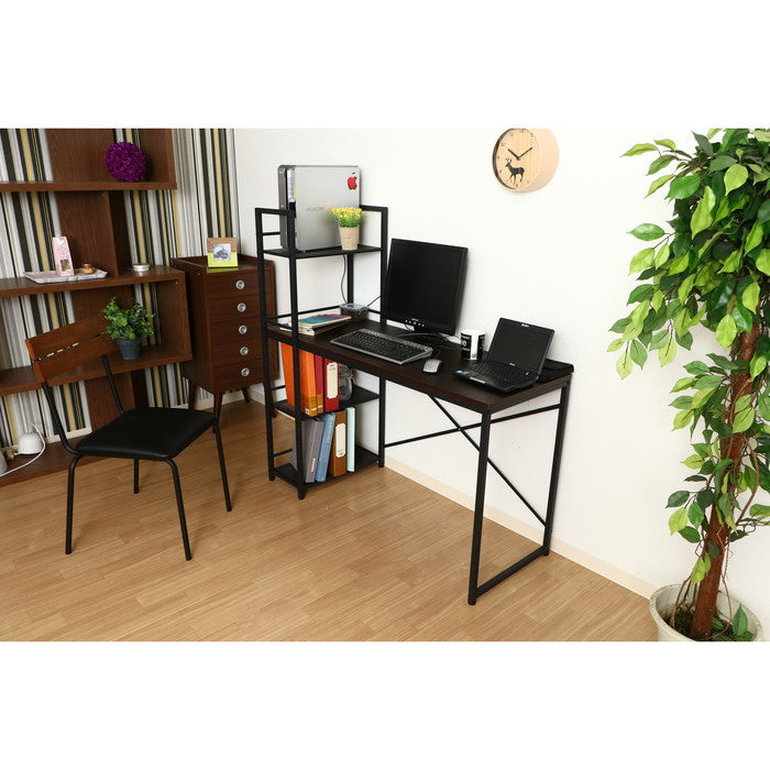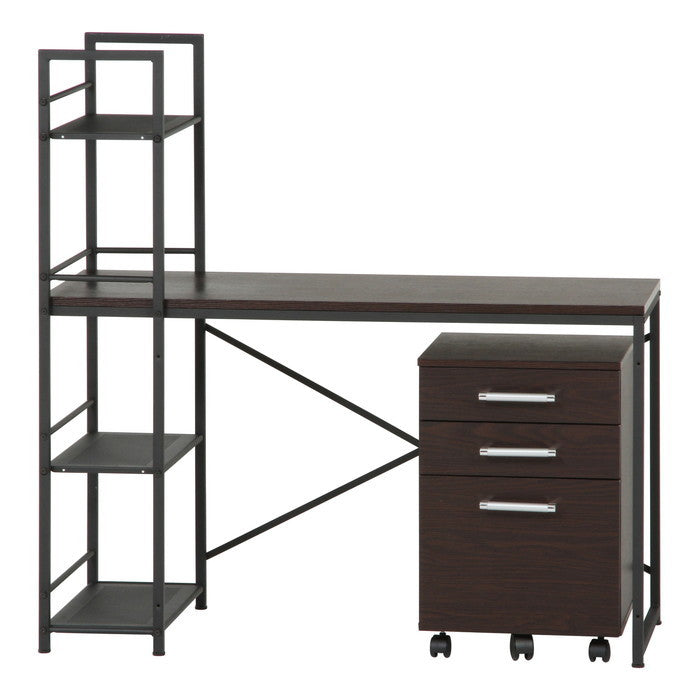 収納ラックが左右選べるデスク ラック付き ルール49 ダークブラウン|オフィスや店舗に最適|fj-13527