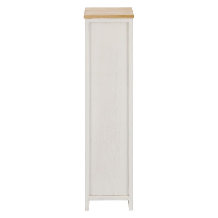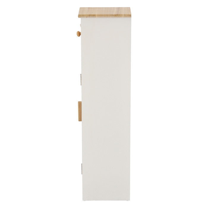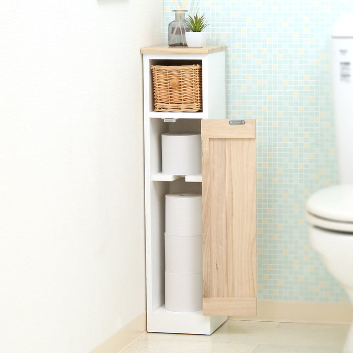 このラックは、幅19cm、奥行21cm、高さ78.5cmというスリムなサイズ感ながら、抜群の収納力を実現しています。トイレや洗面所のような狭い空間にもすっきりと収まり、ナチュラルな風合いが空間に温かみをプラスしてくれます。木目が美しい桐材を活かしたラッカー塗装仕上げで、落ち着いた雰囲気を演出しながらも耐久性も備えています。