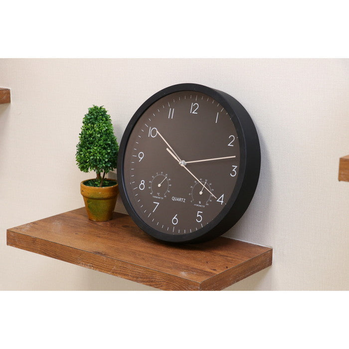 温湿度が一目でわかるシンプル掛時計 ベゼルΦ25cm ブラック EG6910ATH-YP21|fj-26333