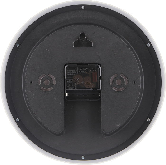 この時計は直径25cmと程よいサイズ感で、リビングやキッチン、寝室はもちろんオフィスやカフェなどでも設置しやすい大きさです。文字盤は白を基調とし、数字も見やすくレイアウトされているので、遠くからでも時間が確認しやすいのが特徴です。