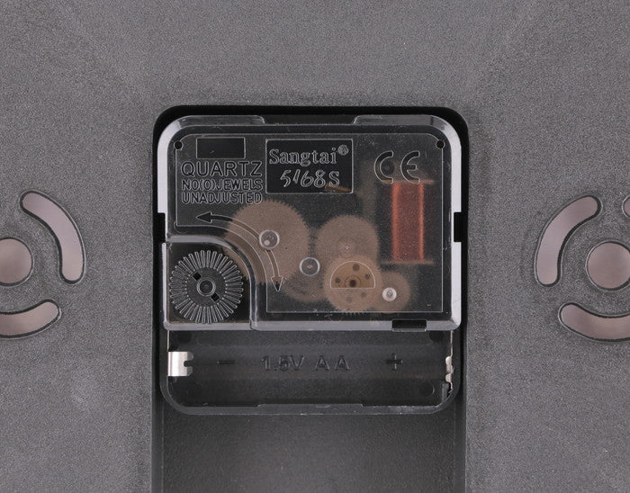 スイープタイプムーブメント(音が静かなタイプ)なので、寝室など静かな空間でも気になりません。また単3電池1本使用(別売)のため交換も簡単です。
