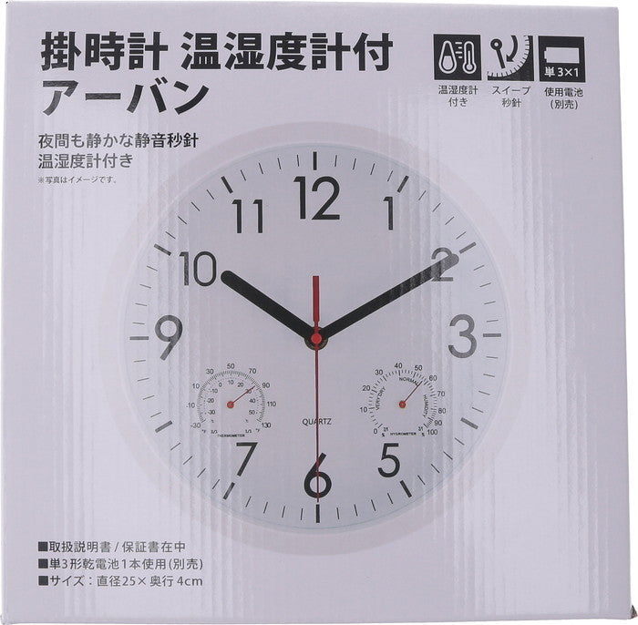 シンプルで見やすい温湿度計付き掛時計「アーバン」25cm ホワイトの魅力