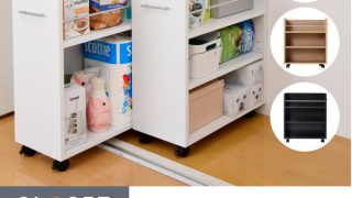 棚板が固定されているものより可動式だと、高さ調整できて使いやすいです。この商品は2枚の可動棚つきで、多様なサイズの物に対応可能です。