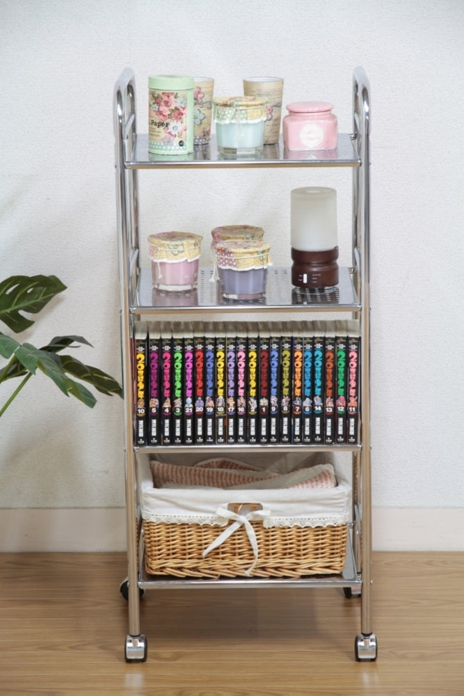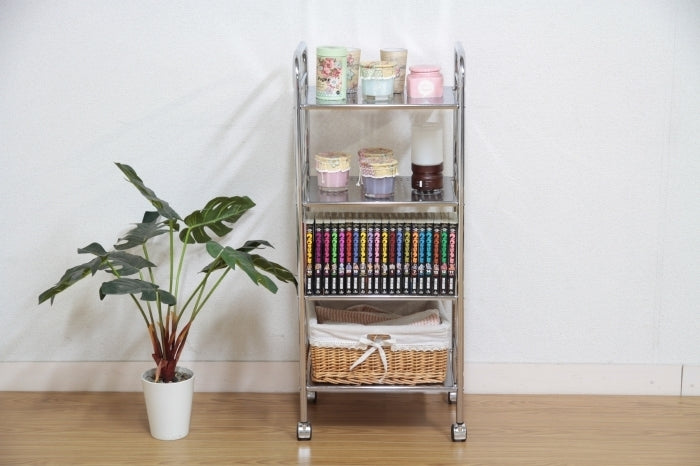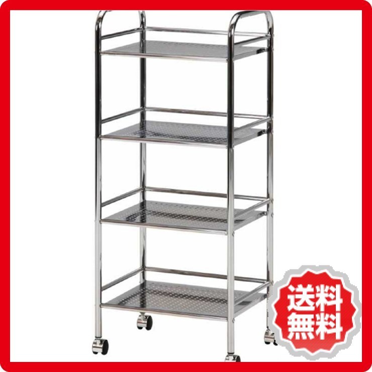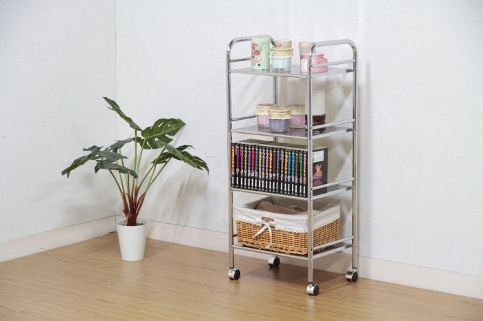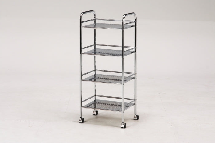 スタイリッシュで使いやすいマルチワゴン4段 クロム仕様|店舗やオフィスに最適|fj-93399