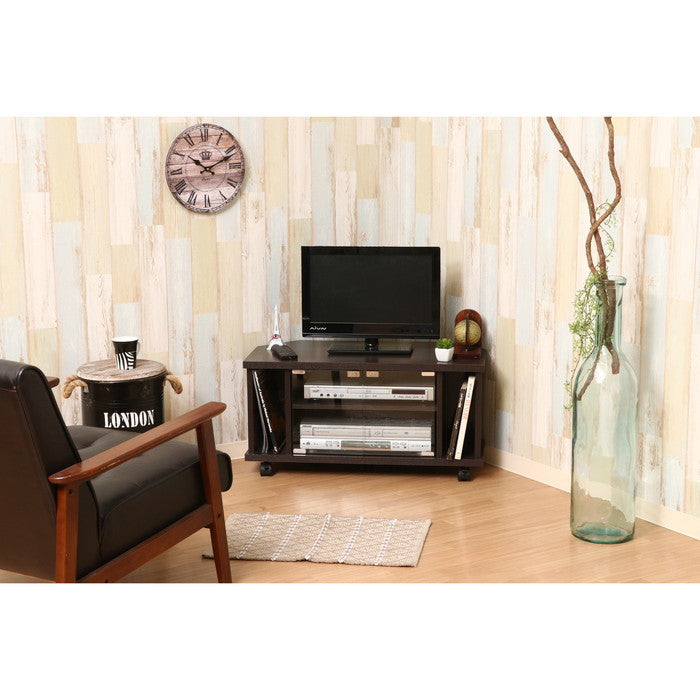 コンパクト設計で使いやすいコーナーTV台 ブラウンカラーで落ち着く空間に|fj-99267
