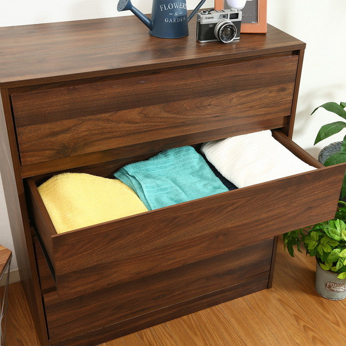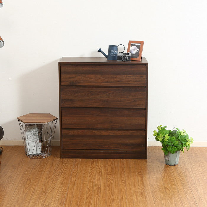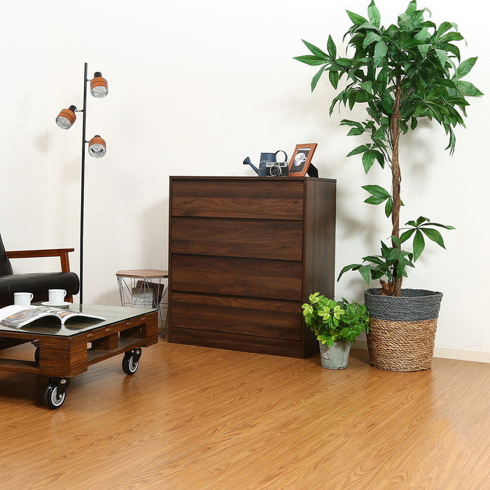 工具不要でサッと組み立て!4段チェスト MBR ミディアムブラウン 大容量収納に最適|fj-99454