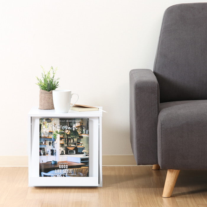 シンプルで使いやすいキューブボックス フラップ扉WH|おしゃれ収納に最適なホワイトカラー|fj-99894