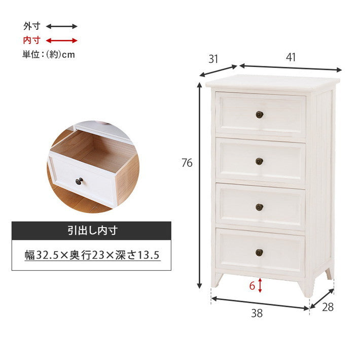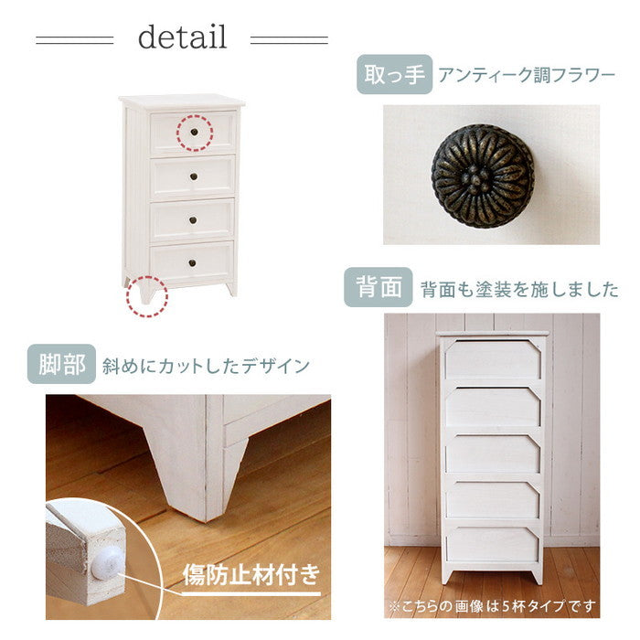 コンパクトで使いやすい桐材チェスト MCH-5384AW アンティークホワイトの上品収納|hgs-2101778500
