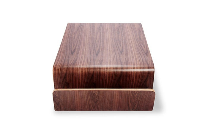 素材にはプライウッド(合板)にウォルナット突板を貼り、その表面にはウレタンクリア塗装を施しています。ウォルナット特有の深みある木目と落ち着いた色合いが感じられ、高級感と温かみを兼ね備えています。