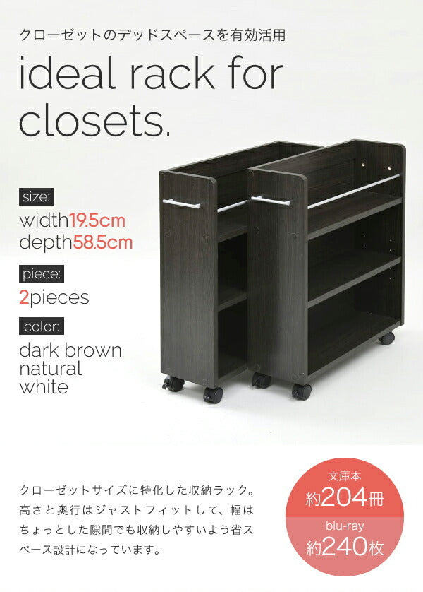 日々の暮らしの中で、ちょっとした収納スペースが足りないと感じたことはありませんか?特にクローゼットや押し入れの隙間は、デッドスペースになりやすく、うまく活用できないことも多いですよね。そんな悩みを解決してくれるのが、「キャスター付きクローゼット収納ラック2個セット」です。幅19.5cmというスリムな設計で、狭い隙間にもすっきり収まり、使い勝手の良さが魅力の収納アイテムです。