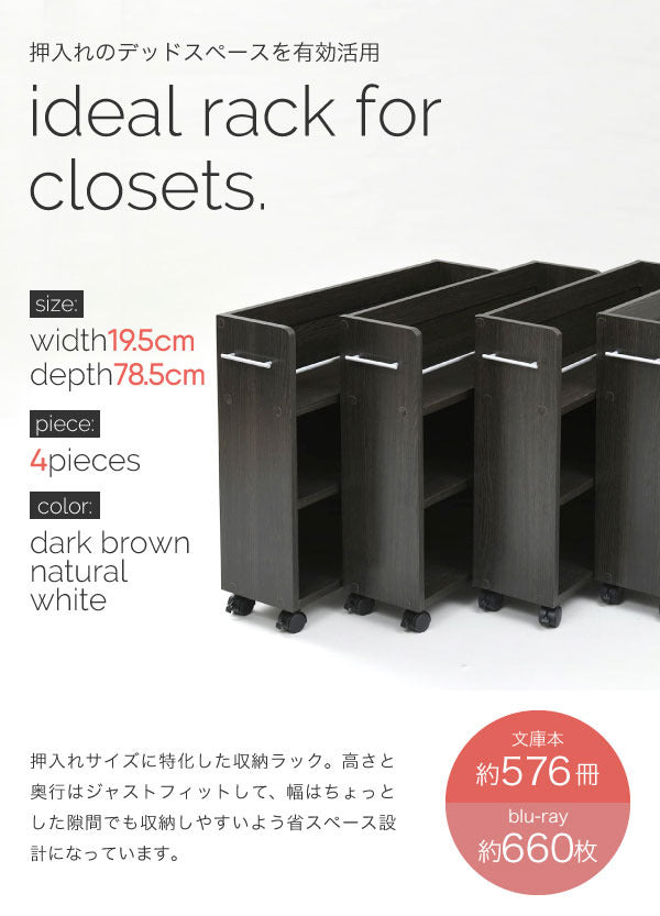 押入れや隙間にぴったり!キャスター付きスリム収納ラック4個セット|jk-sgt-0130set