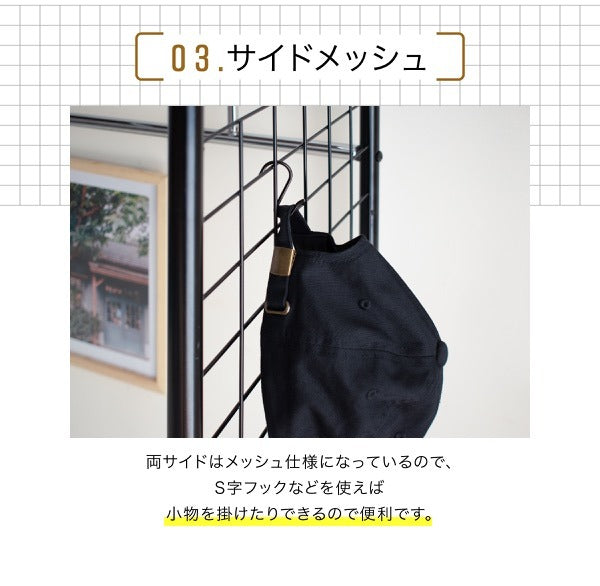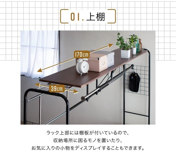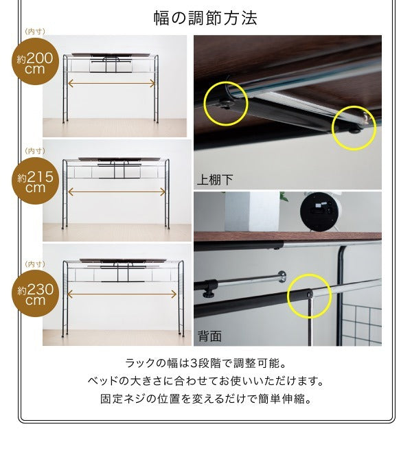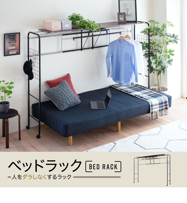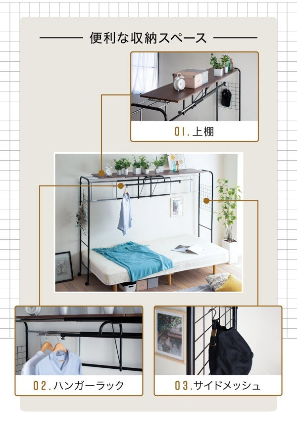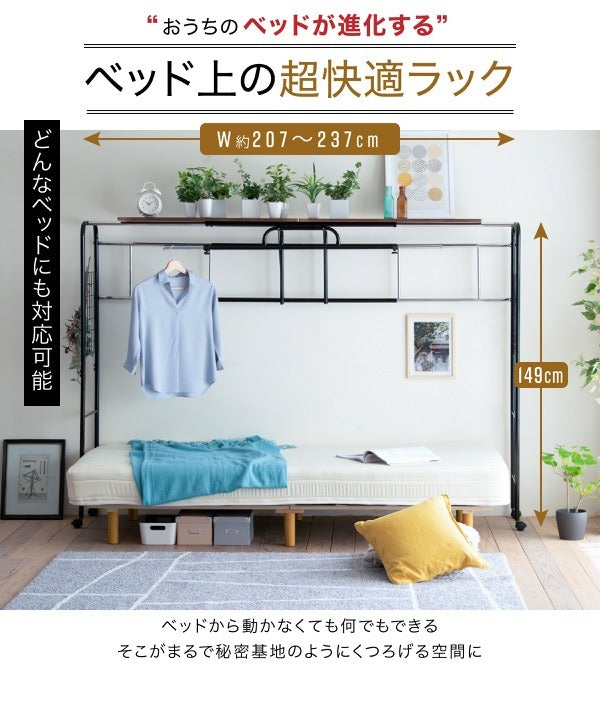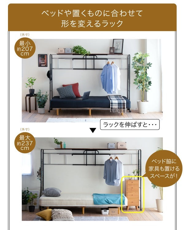 ベッド上の空間を有効活用!伸縮&キャスター付きハンガーラック付き収納棚|jk-uni-0001