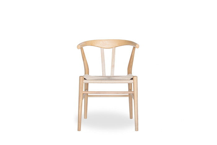 このチェアは伝統的なYチェアの特徴であるY字型の背もたれデザインを踏襲しつつ、フレームには上質なアッシュ材(一部無垢集成材)を使用しています。木目が美しく温かみのある質感は、どんなインテリアにも調和しやすいナチュラルテイストです。