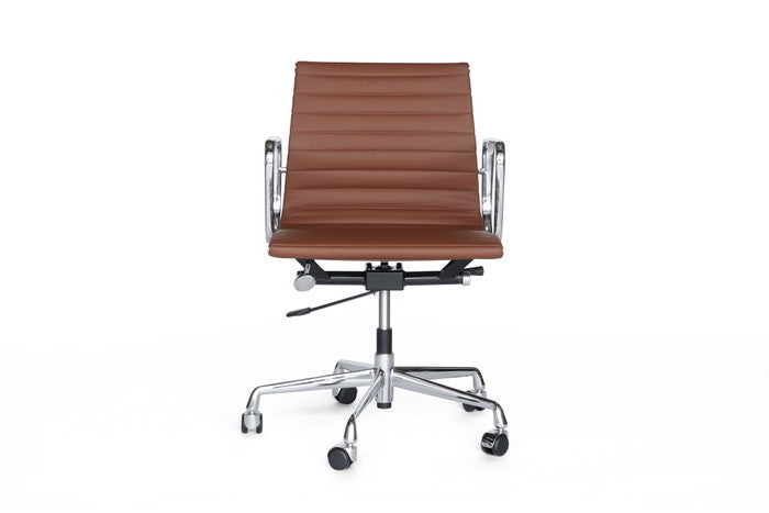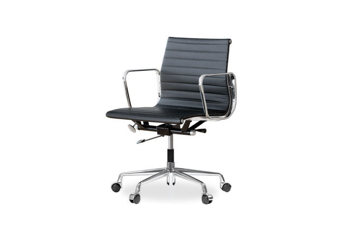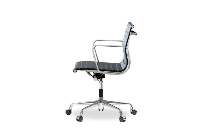 アルミナムチェア ローフラットパッド 本革キャスター付きで快適な座り心地|kwg-chea07lfc-le
