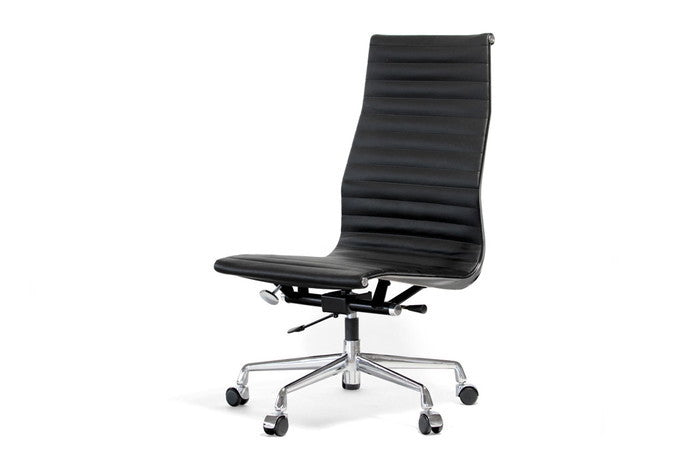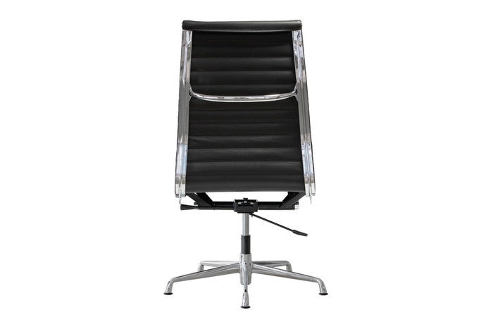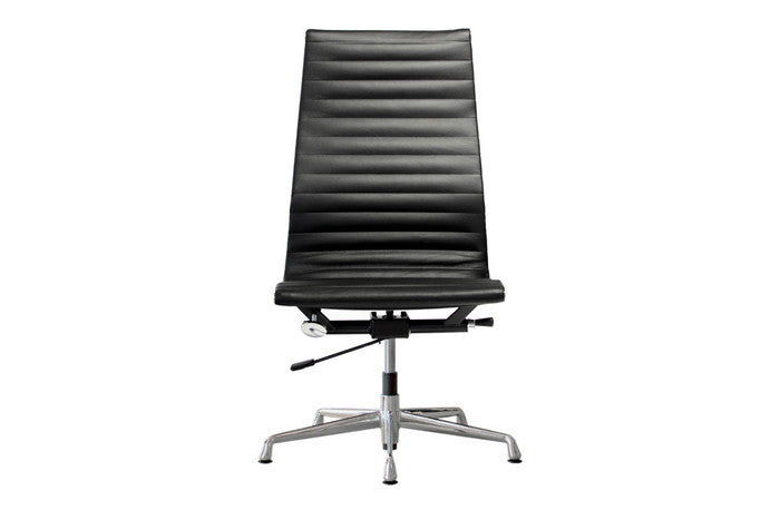アルミナムチェア ハイ フラットパッド 本革レザー×クローム脚で上質な座り心地|kwg-chea10hfc-le