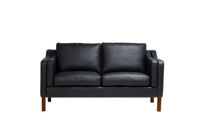 ダブルクッションソファ 2P 本革×ウォールナット脚で上質な座り心地を実現|kwg-sf7224b-wal-le