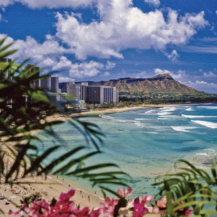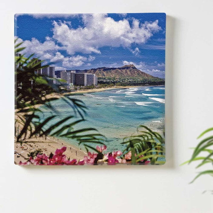 ワイキキビーチの風景を飾る日本製ファブリックパネル Mサイズ30cm×30cm|lib-pho-0085-m