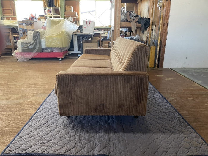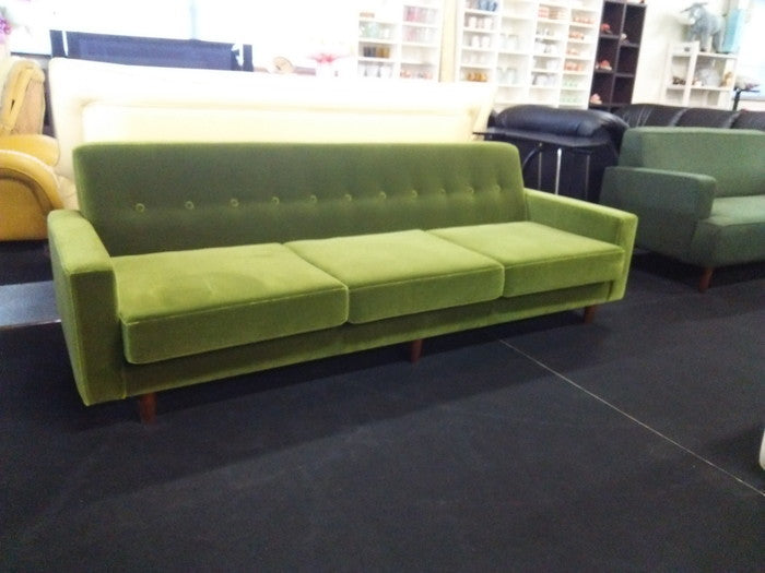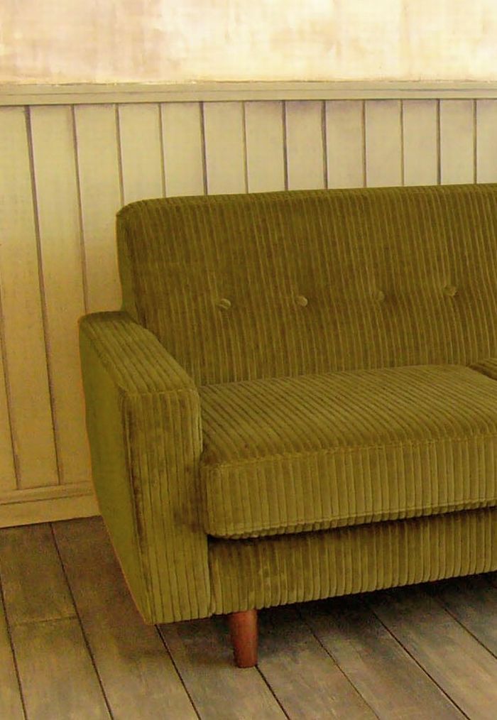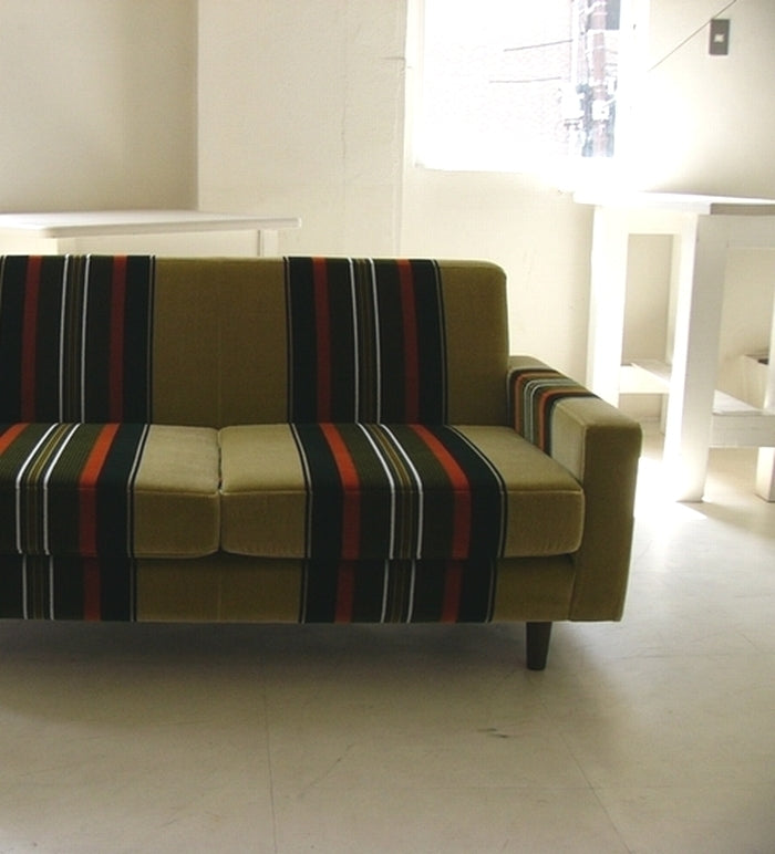日本製モケット&コーデュロイ素材使用の3人掛けローソファ|ストライプ&ライトグリーンが彩る上質空間|ma-low3p