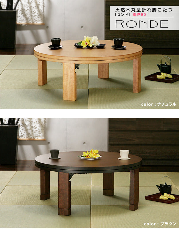 天然木の温もり感じる折れ脚円形こたつ「ロンド」90cm|高さ調整&継ぎ脚で使いやすさ抜群|mu-11100196