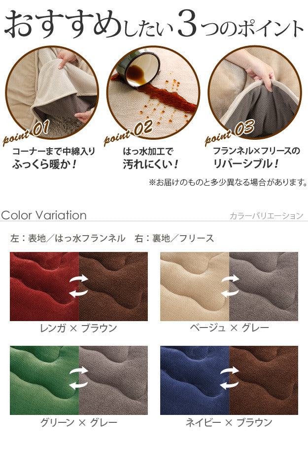 はっ水&リバーシブルで使いやすい!省スペース設計の長方形こたつ布団 モルフ 120x80cm用|mu-21101614