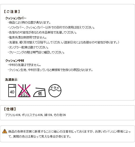 このセットは、70×70cmの大判サイズで存在感があります。ポリエステル・アクリル・綿・その他の複数素材がバランスよく混紡されているため、見た目だけでなく触り心地にもこだわった仕上がりです。