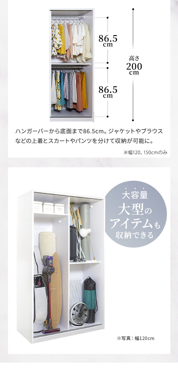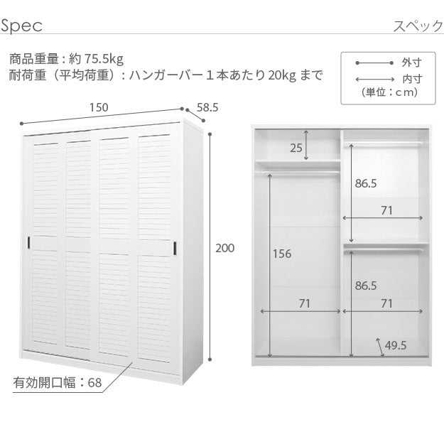 大容量で整理しやすいワードローブ クローゼット 引き戸ルーバー式 アネモネ 幅150cm|mu-i-3500245