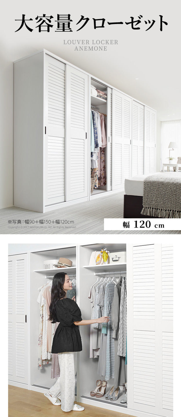 大容量ルーバー引き戸ワードローブ「アネモネ」幅120cmで衣類もすっきり収納|mu-i-3500311