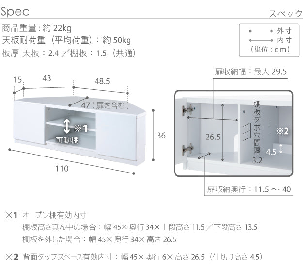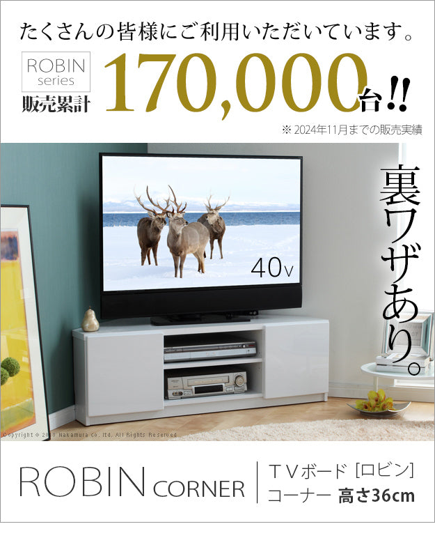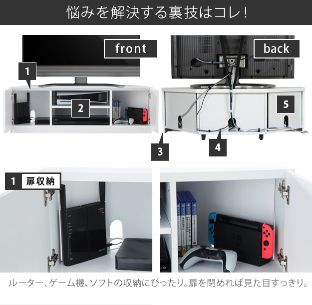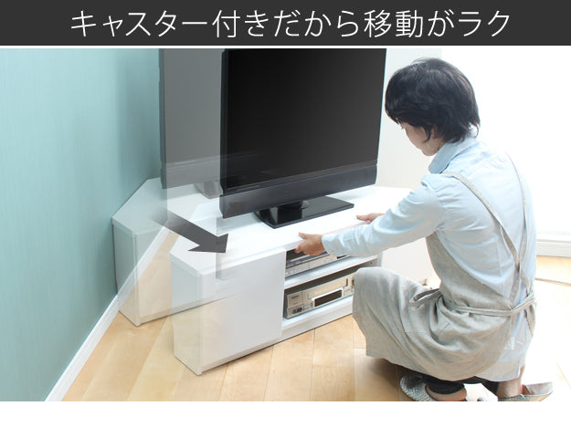 白鏡面仕上げで美しく収納力抜群!ロビンコーナー背面収納付きテレビ台|mu-m0600021
