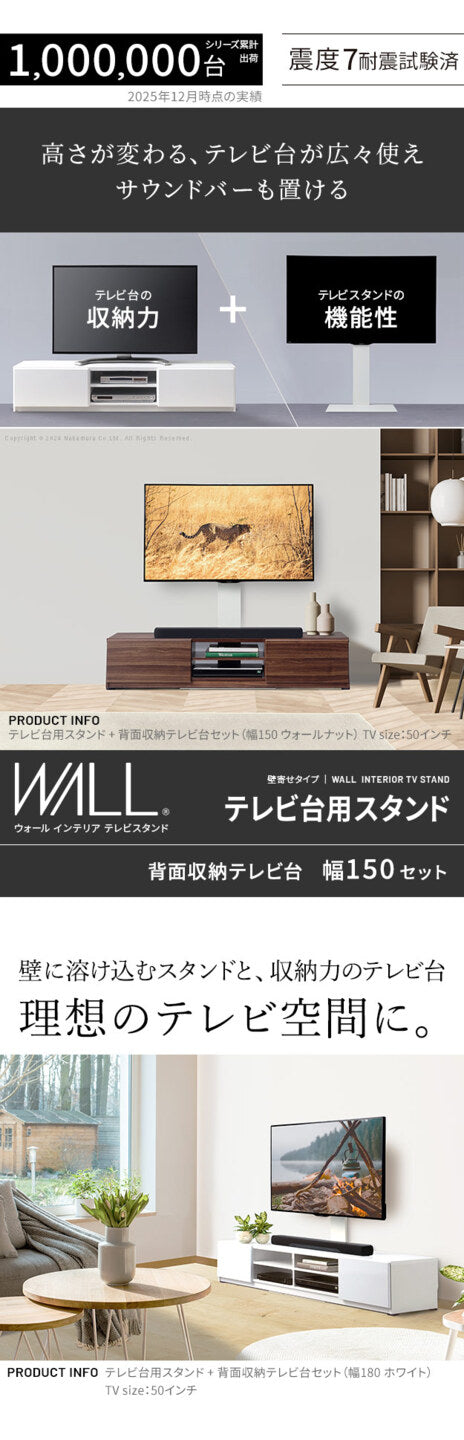 壁寄せスタイルでスッキリ収納!背面収納テレビ台セット 幅150cm 32〜65V対応|mu-wstvbl