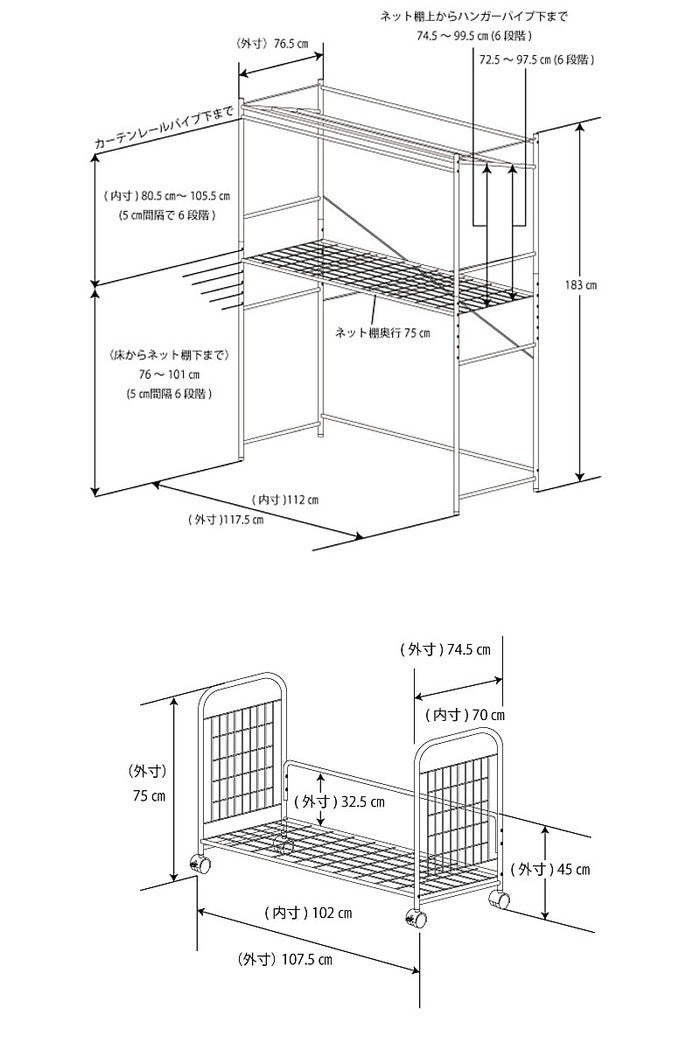 布団収納ラックに便利なハンガーラック付き|店舗やカフェの整理整頓に最適|sei-sf-20