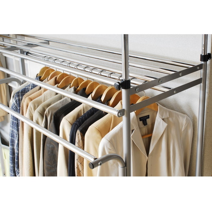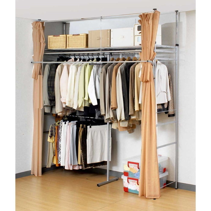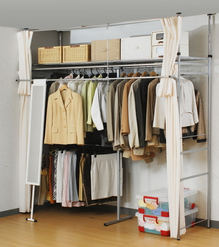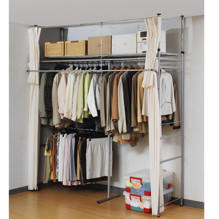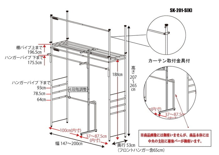 壁面を有効活用!突っ張り式ハンガーラック 幅147〜200cm フロントハンガー付きで収納力アップ|sei-sk-201-s