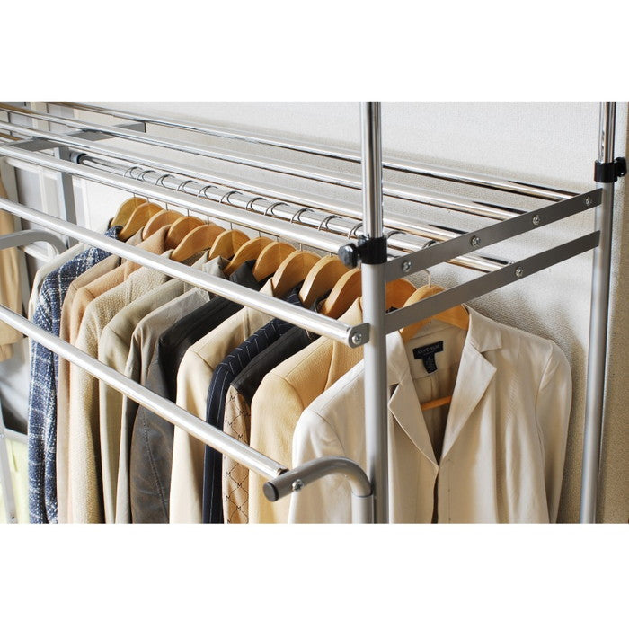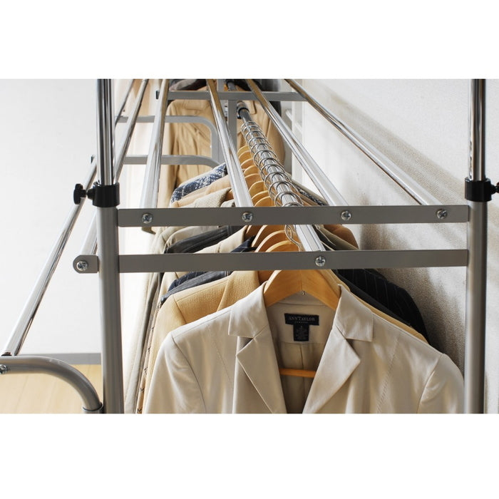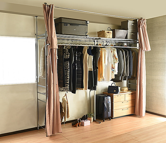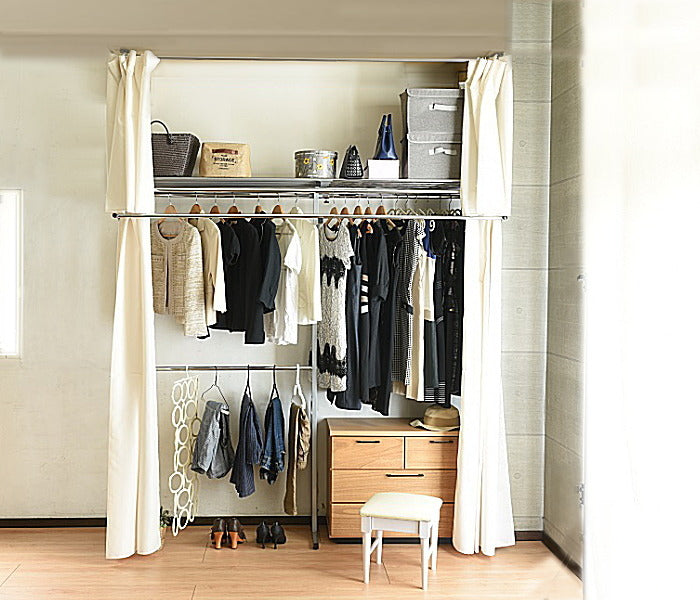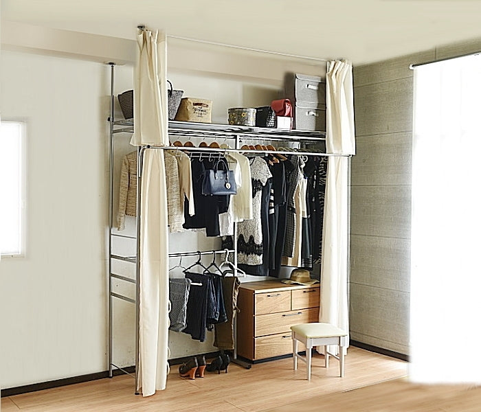 伸縮自在の突っ張り式ハンガーラック|壁面を有効活用できるフロントハンガー付 クローゼット収納|sei-sk-201-w