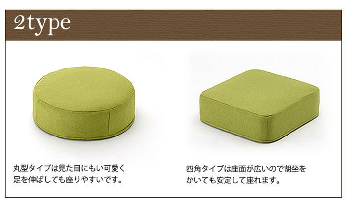設置場所や使うシーンによって四角タイプか丸型タイプか選びましょう。座椅子やソファには四角形がフィットしやすく、床置きやフロアクッションとして使うなら丸形も検討してみてください。