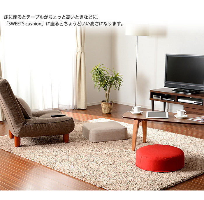 「SWEETS A366・A367 クッションカバーリング」は、ご自宅のソファや座椅子だけでなく、お子さまのお昼寝スペースや和室の畳コーナーなど、多彩なシーンで活躍します。例えばテレビを見るときの背当てとして使ったり、床に座る際のお尻クッションとして利用したりと用途はさまざま。