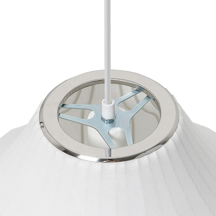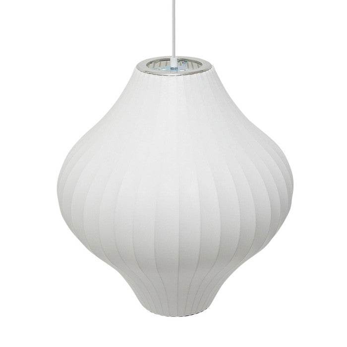 「バブルランプ ペアランプMサイズ」は、20世紀を代表する家具デザイナー、ジョージ・ネルソンによる名作デザイン。シンプルながら特徴的なフォルムは、まるで光が泡のようにふんわりと広がる優しい印象を与えます。フレームには耐久性の高いスチールを使用し、シェードはセルローズ製。自然素材ならではの柔らかな質感が、お部屋全体に温かみと落ち着きをもたらします。